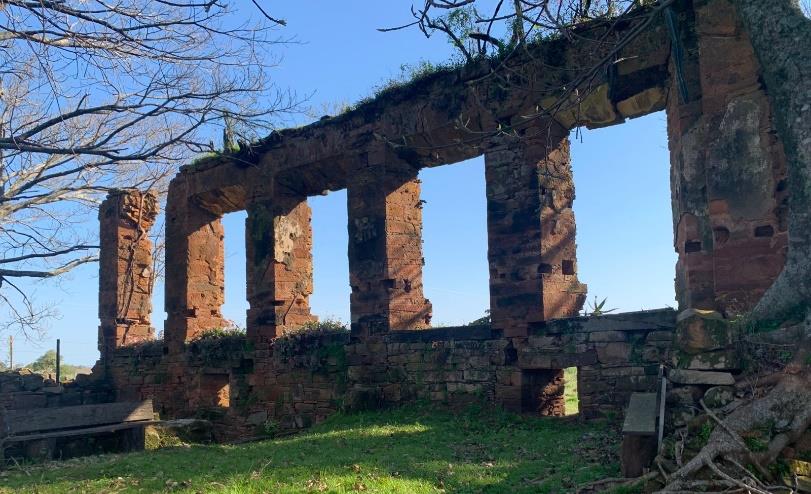 • Um posto da estância jesuítica de Yapeyú (séc. XVII-XVIII). Ruínas centenárias em Alegrete (RS)