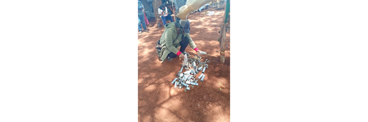 Os Guarani e Kaiowá recolheram projéteis, cápsulas e bombas de gás estouradas após ataque da Tropa de Choque. (Foto: Comunidade Guyraroká)