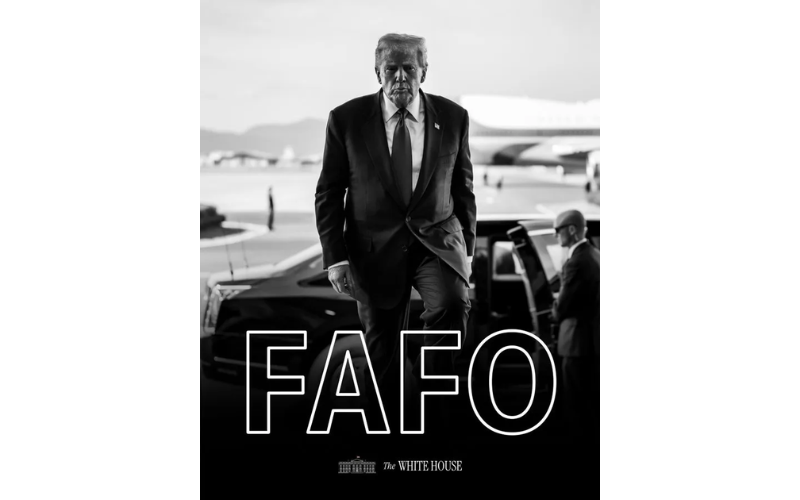Já a foto em preto e branco publicada logo após a captura de Maduro, com um retrato de Trump e a gíria FAFO, do termo em inglês Fuck Around and Find Out (que significa para os norte-americanos algo como “procure e você vai achar”), teve aproximadamente 10 vezes mais curtidas que a média do canal e oito vezes mais que a de compartilhamento. Trata-se de mais um exemplo em que a análise iconográfica mostra um Trump superior, além de reforçar a visão expansionista dos EUA.