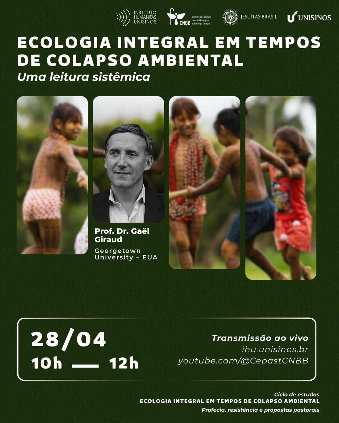 Em 28 de abril, o economista e jesuíta Gäel Giraud, professor na Georgetown University, nos Estados Unidos, apresentará uma leitura sistêmica da Ecologia Integral em tempos de colapso ambiental. Giraud tem insistido na necessidade de incluir os bens comuns no debate sobre o enfrentamento da crise ecológica e a transição energética. Os bens comuns, diz, são “todos os recursos simbólicos, culturais, materiais e ecológicos que queremos gerir em conjunto. (…) O que proponho é uma terceira via: nem tudo privado, nem tudo público, mas a sociedade civil na linha de frente para a invenção dos ‘comuns’”.