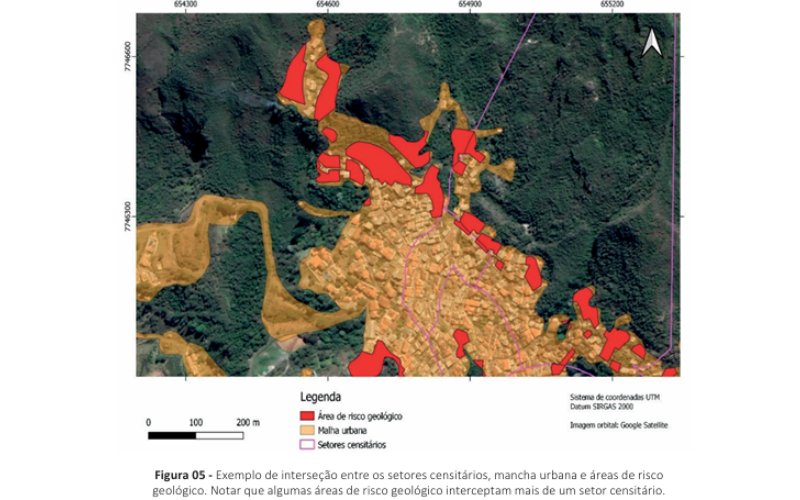 No “Diagnóstico da população em áreas de risco geológico, Juiz de Fora, MG”, elaborado pelo Serviço Geológico do Brasil – CPRM e publicado no ano de 2021 [2], “A interseção entre as 80 áreas de risco geológico mapeadas em Juiz de Fora/MG e a área urbanizada localizada nos 695 setores censitários apresentados pelo Censo Demográfico 2010 resultou em 304 polígonos, a partir dos quais foi possível estimar que cerca de 16.436 domicílios particulares e coletivos estão localizados em áreas de risco geológico alto ou muito alto.”