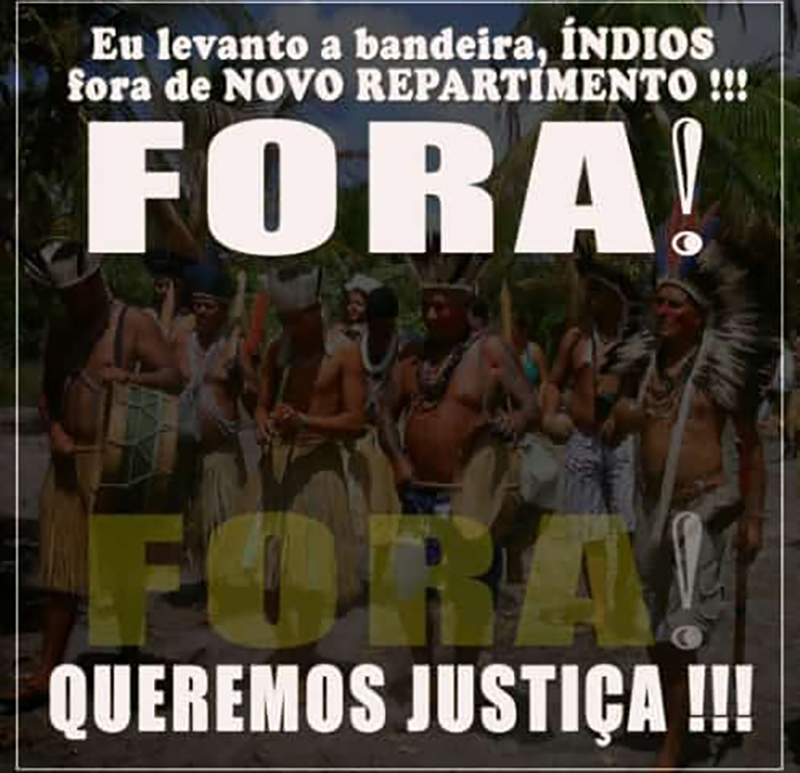 Com a notícia da liberação dos corpos dos caçadores Cosmo Ribeiro de Sousa, José Luís da Silva Teixeira e Willian Santos Câmara neste domingo (1), várias manifestações foram realizadas em Novo Repartimento pedindo por justiça e contra os indígenas. “Eu levanto a bandeira, Índios fora de Novo Repartimento!!! Fora! Queremos Justiça!!”, diz uma publicação veiculada na rede social Whatsapp do grupo de Educação Indígena, vinculado ao Fórum Regional de Educação Campo.