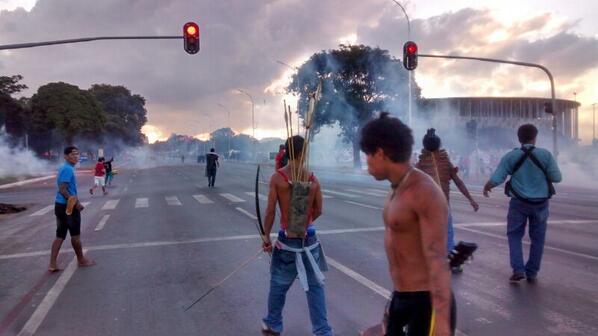 Manifestação contra Copa termina em confronto em Brasília http://oesta.do/1mmAfDm pic.twitter.com/xUNbzcl5FK #MobilizacaoNacionalIndigena