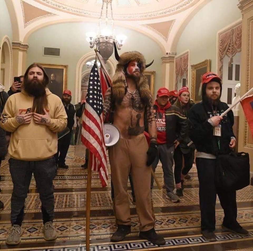 Ontem os nazistas (como este da foto) e outros tantos seres doentios saíram dos esgotos e invadiram o Congresso americano.