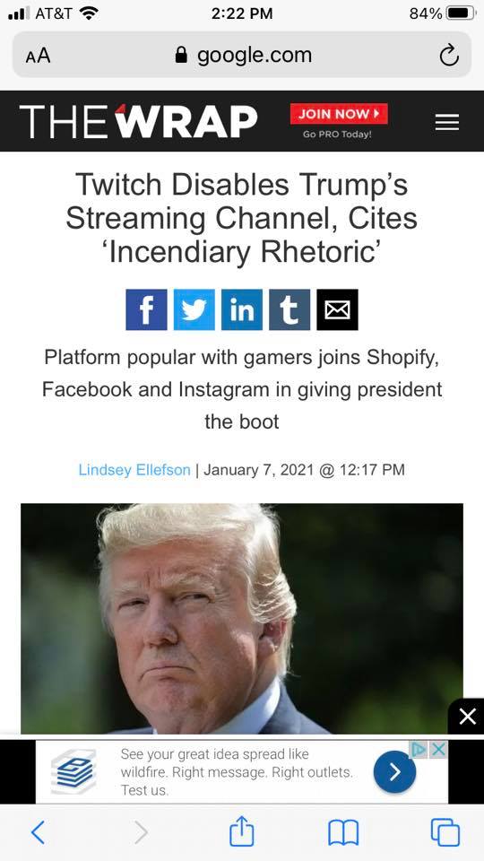 Donald Trump está sendo EXPULSO da internet. Depois de ser bloqueado do Facebook, do Instagram e do Twitter, ele agora foi expulso do Twich e do Shopify, a segunda maior loja online do mundo.