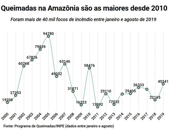 Não por acaso, as atuais queimadas da Amazônia acontecem em áreas tradicionalmente dedicadas a pastagens ou a plantações de soja. Um cientista da agência espacial Nasa apontou com precisão a localização dos focos de calor detectados em agosto. “[Os satélites mostram] colunas de fumaça enormes saindo daquelas áreas da fronteira agrícola, como Novo Progresso, a região da Terra do Meio, no Pará, e o sudeste do estado do Amazonas”, disse Douglas Morton ao jornal Folha de S.Paulo, acrescentando que a última vez que os satélites detectaram uma destruição semelhante foi em 2004.